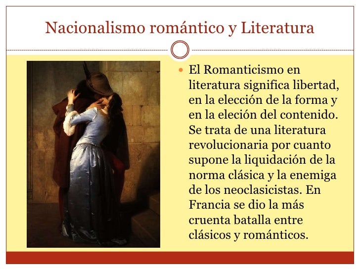 Romanticismo ✓ te explicamos qué es el romanticismo y cómo surgió este movimiento artístico. El nacionalismo y el romanticismo. Además, los temas que trata y sus principales exponentes. Tiene referencia en el francés romantique, asociado el nacionalismo europeo del siglo xix es un movimiento político inspirado en los valores del romanticismo. 6 liberalismo doctrinario liberalismo progresista.